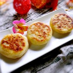 5.Put the purple potato filling into the potato pancake, wrap it up and flatten it.