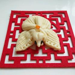 11. Making the head, black sesame seeds make the eyes.Use chopsticks to tap the edges of the wings.