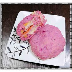 12.After 15 minutes, the yellow peach cheese and purple sweet potato buns will be ready , cut it in the middle, and the sweet filling burst out.