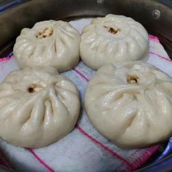 7.Put the seasoned tofu in and shape into buns