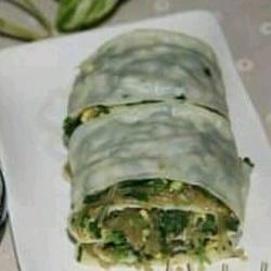 4.Spread the vegetable filling evenly on the dough sheet, leaving a circle in the middle
