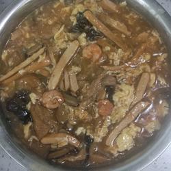 Shrimp, pork belly, gluten, fungus, dried fragrant mushrooms ( appropriate amount ) | Cooking wine, light soy sauce, aniseed, salt, starch ( appropriate amount ) |