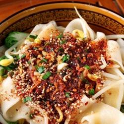 13.Put the cooked pulled noodles into a bowl, add minced green onions, minced ginger, and chili peppers Noodles, MSG, 2 grams of salt, white sesame seeds.