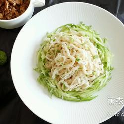 12.Sprinkle cucumber shreds and chopped green onion, pour in bowl juice and mix well before eating