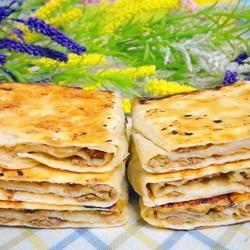 9.Place a layer of meat filling