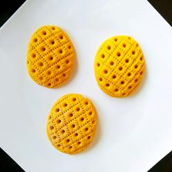 3. Follow the steps to use a clean comb to press out the lines diagonally, and then use chopsticks to mark each diamond shape Make a hole in the top, be careful not to drill it all the way through.