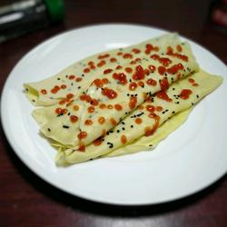 8. Heat a pan over low heat, brush a thin layer of oil, pour in the batter and sprinkle with sesame seeds