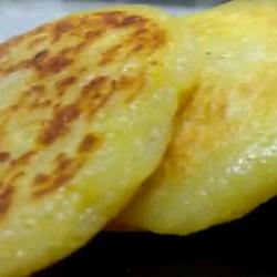 6. Heat the oil in the pan and add small round cakes to each pan.Brush oil on the top of the round cake and bake until both sides are golden
