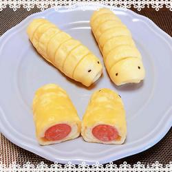 13.A delicious plate of caterpillar sausage cheese buns is on the table.