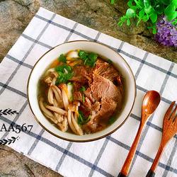 5. Next, add noodles and beef slices with soy sauce.After the noodles are cooked, turn off the heat and season with salt.