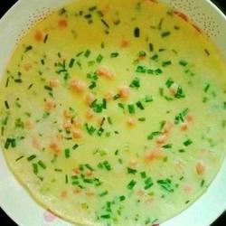 4.Chop chives, dice ham, put into sifted batter, add a little salt and mix well