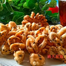 1.Prepare wheat flour, corn oil, eggs, sesame seeds, and salt