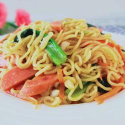 How to stir-fry instant noodles with ham and vegetables