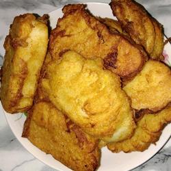 3. Heat the oil to 80%, wrap the steamed bun slices in egg liquid, and deep-fry them Until both sides are golden