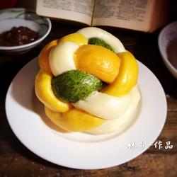 Knead the dough of the four colors until they are soft and hard.The dough is a little harder than ordinary steamed buns.The proportion of ingredients in the dough depends on the amount of water absorbed by the flour in each place.