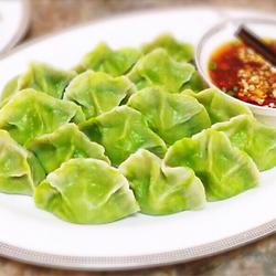 18.This is a plate of cooked dumplings, with a touch of green spring feeling, so appetizing!