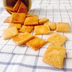 6. Preheat the oven to 190 degrees.Roll the dough into 0.3 cm slices and cut into cubes.Place in baking pan.