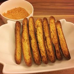 8.Make it into large pieces and bake them in the air fryer at 160 degrees for 15 minutes and then cut into strips