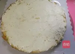 6. Place the bottom layer of cake on a cake paper mat and spread a layer of cream.