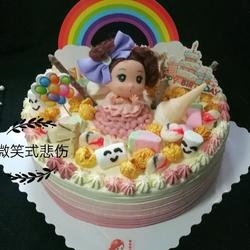 11. For the middle body of the confused doll Wrap it in plastic wrap, but not your hands and legs.Sit on the cake, a little closer to the front.