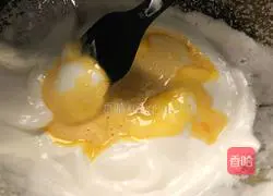 7.Pour the egg yolk liquid into the meringue and mix evenly