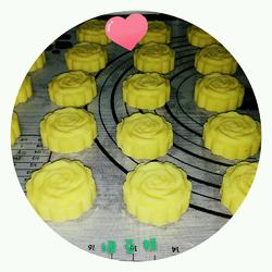 5. Roll the fried mung bean cake into small balls and then use a mold to shape them.(Adjust the size according to your own mold, mine is about 28g each)