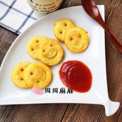 5. Divide the potato dough into two pieces for one dollar As thick as a coin, you can use a round mold to press it, or you can press it at the mouth of a cup, and the shape can be whatever you want