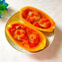 11.Pour the shiitake mushrooms and papayas into the papaya shell