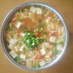 1. Prepare tomatoes, eggs, soft tofu, carrots, enoki mushrooms, coriander, green onions (except tomatoes, tofu and eggs are a must, others can be added if conditions permit)