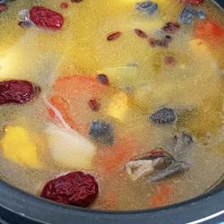 4.Put the ingredients into the pot and add water.After all the ingredients are covered, press the soup button.(You can add a little salt if appropriate) Just wait.The red dates and wolfberries are put in about fifteen minutes before the stew is finished.Putting them in too early will affect the taste of the soup)