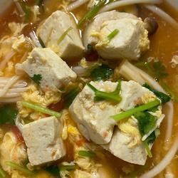4.Pour in the mushrooms and enoki mushrooms and tofu and cook.
