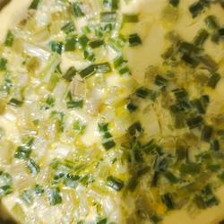 3. Then add appropriate amount of water, chopped green onion, monosodium glutamate, oil and salt, stir evenly, and then skim Remove the foam and steam in the pot