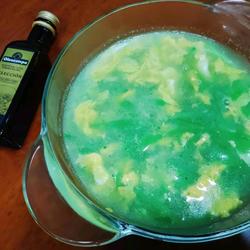 5. After it boils, slowly add the egg liquid and turn to low heat.After boiling, add 3 grams of salt, bring to a boil and remove from the pot.