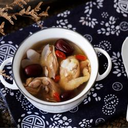 5.Put the chicken, sea coconut and red dates into the casserole and add water