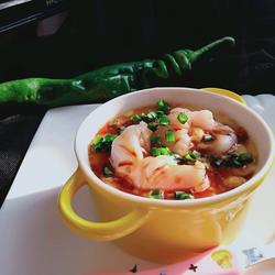 10. Pour the steamed shrimp and egg custard into the soy sauce and add the chopped green onion.