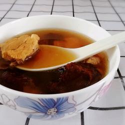 3. Remove the blanched ribs, washed Smilax and wolfberry.Put the pitted red dates into a stew pot, add a few slices of ginger, and pour in a bowl of boiling water.