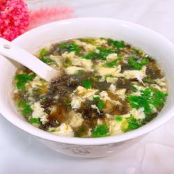 7.Put it out, sprinkle with a layer of minced coriander, and the fragrant and delicious seaweed and egg drop soup is ready
