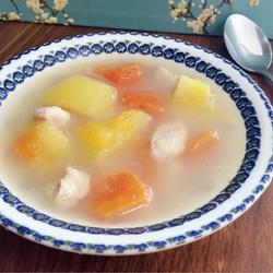 6.Put in another soup pot and add chopped papaya and lean meat.