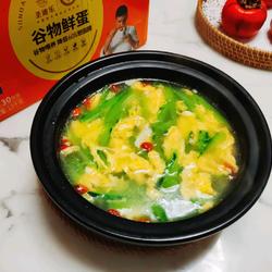 5.Slow heat, add the well-mixed egg liquid, an appropriate amount of salt, and a few wolfberries.