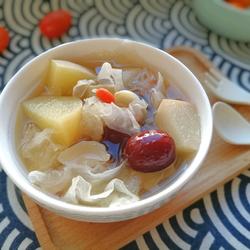 3.Wash the red dates, wolfberry and lily, cut the white fungus into small pieces and put them into the pot p>