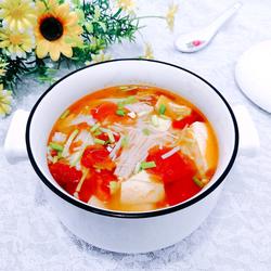 How to make tomato and enoki mushroom tofu soup