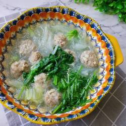 8.Pour it into a bowl, a delicious and fragrant meatball and white vermicelli The soup is finished.