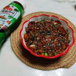 8. Place the fried minced meat evenly on the egg custard.A bowl of warm minced meat and egg custard, I hope you like it.