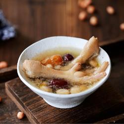 7.Put the chicken feet, peanuts, red dates and candied dates into a casserole and add water p>