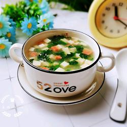 4.Bring water to a boil, add diced tofu and cook for 2 minutes