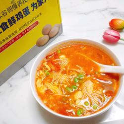 1. Slice tomatoes, cut off the roots of enoki mushrooms, wash and tear into small florets.