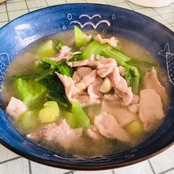2.Put the vegetable stems on top of the meat slices, cook the vegetable stems and add the vegetable leaves.