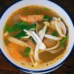 When making Tom Yum Goong soup, you must put in the hard-to-cook seafood first and then put in the easier-to-cook seafood last.