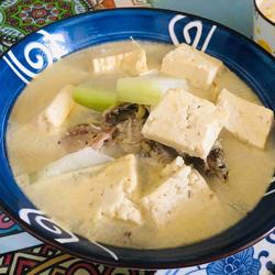 5.Add ginger slices, tofu, and winter melon, and simmer over high heat.