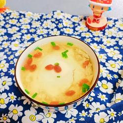 4. Steam until the eggs are solidified, pour in boiling water, add wolfberry, and then Steam for 10 minutes,